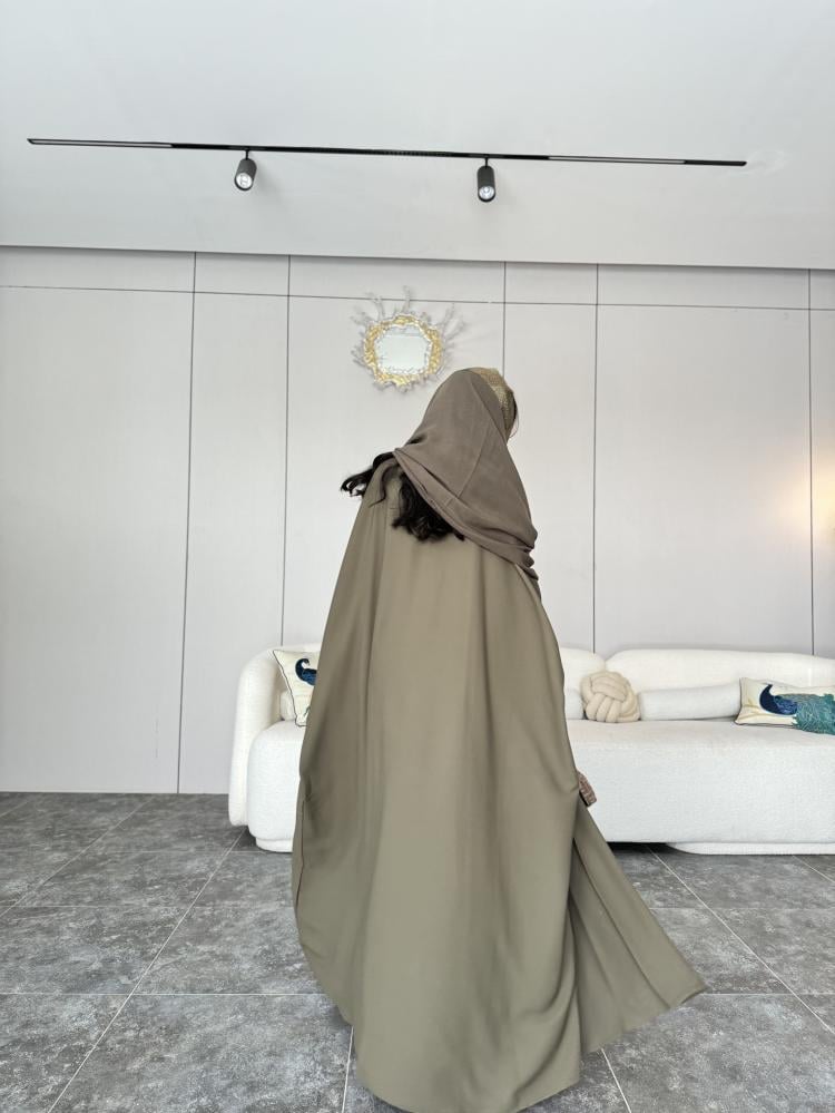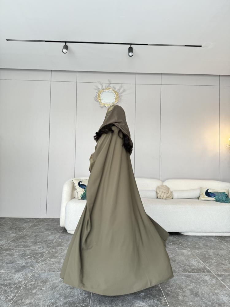 كريب جوليا زيتي فاتح قصة فراشة واسعة مع أكمام شيفون كوري + طرحة زيتي